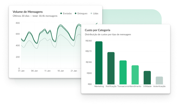 Complete messaging management, with transactional automations, 24/7 service with AI and integration with CRM systems via APIs